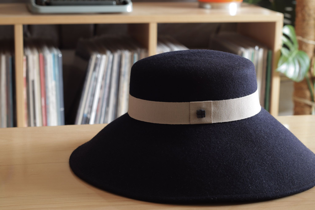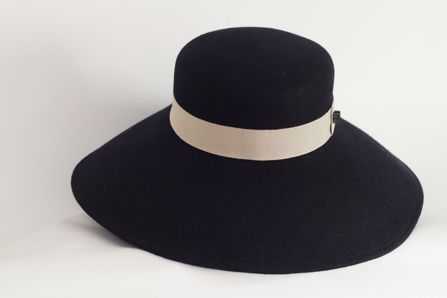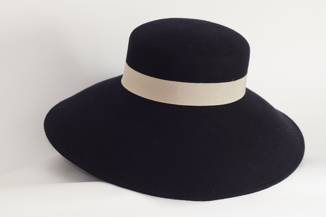 Cappello in feltro di lana merinos, a forma cilindrica con tesa larga conica